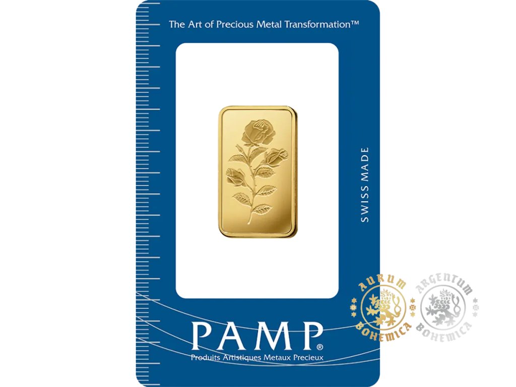 Zlaté slitky PAMP, zobrazující Růži jsou považovány za jednu z nejlépe ražených investičních slitků na světě. Slitky PAMP Růže ryzosti .999 mají peněžní hodnotu. Zlaté slitky PAMP vyráběné ve švýcarské továrně PAMP splňují nejznámější světový standard pro slitky z drahých kovů "London Good Delivery" schválené Londýnskou asociací pro trh s drahými kovy (LBMA) a všemi významnými komoditními burzami po celém světě, které univerzálně zaručuje směnitelnost zlatých slitků PAMP pro investory, banky a investiční obchodníky.