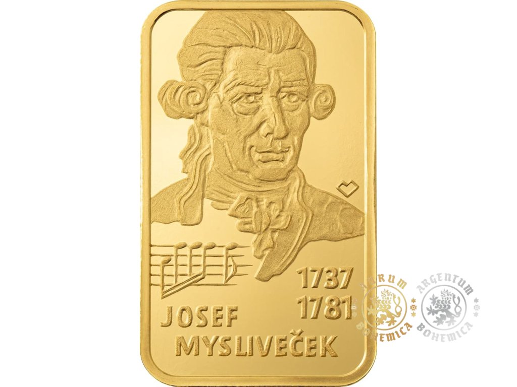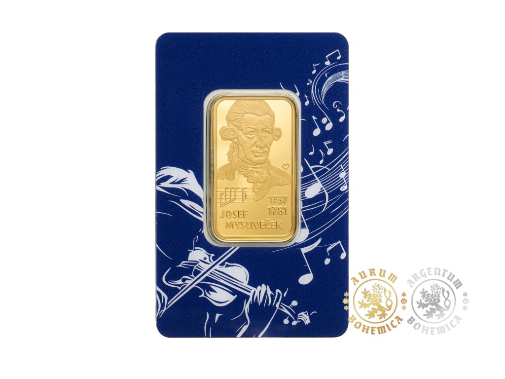 První prodávaný slitek je věnován Josefu Myslivečkovi, přezdívanému „Il divino Boemo“, který byl mentorem i samotného Amadea Mozarta. Slitek s jeho portrétem je ražen ze zlata ryzosti 999/1000, hmotnosti 31,1 g a standardního provedení.