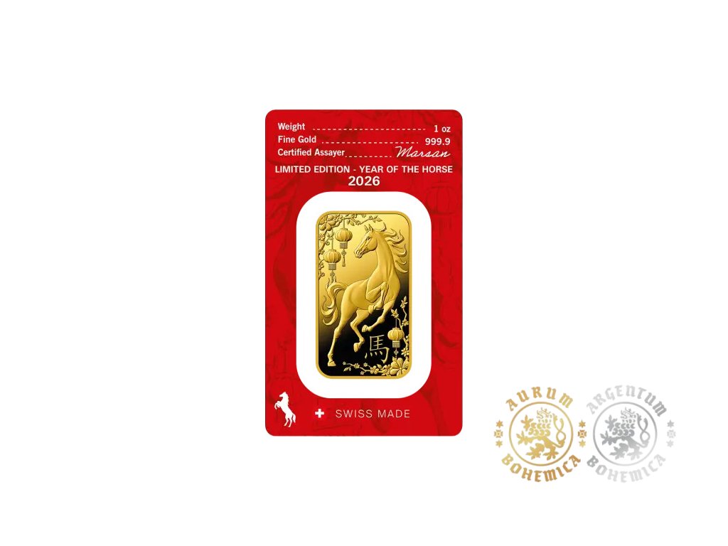 Švýcarská rafinerie ARGOR-HERAEUS razí pro rok 2026 limitovanou sérii zlatých slitků věnovaných populárnímu čínskému lunárnímu kalendáři. Rok 2026 je rokem koně.