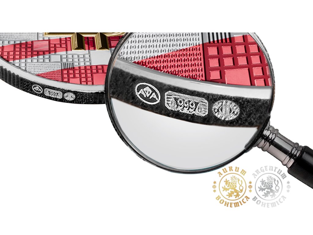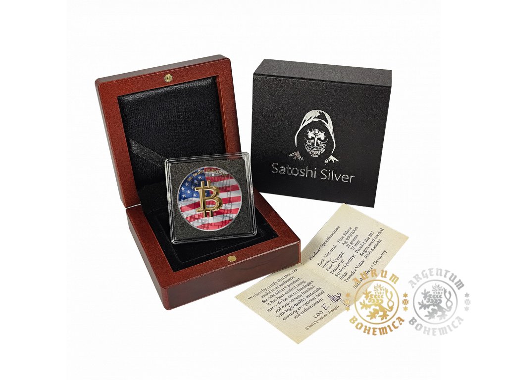 Bitcoin stříbrná medaile 1000 SATS USA 2025 Unlimited Edition stříbro + zlato + metalické barvy