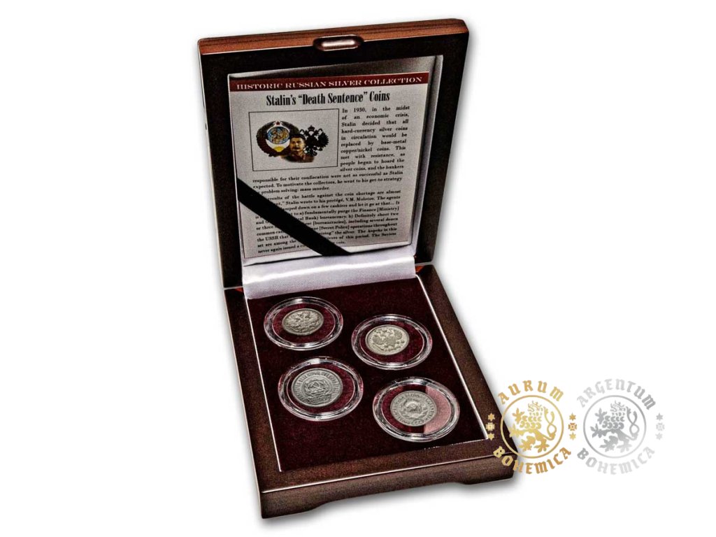 Sada, označovaná symbolicky jako „Stalinův rozsudek smrti“, připomíná poslední éru stříbrných mincí v Sovětském svazu před jejich definitivním stažením z oběhu. Každá mince nese stopy doby, kdy byla v oběhu, a společně vyprávějí příběh o dramatickém přechodu od tradičních kovových měn k levnějším slitkům diktovaným státní mocí. Celková hmotnost obsaženého stříbra je přibližně 0,1881 trojské unce s ryzostí kolem 500/1000.