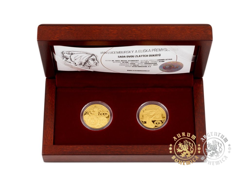 Sada dvoch dukátov Kráľovskej dvojice Ján Luxemburský a Eliška Přemyslovna 2022 Proof