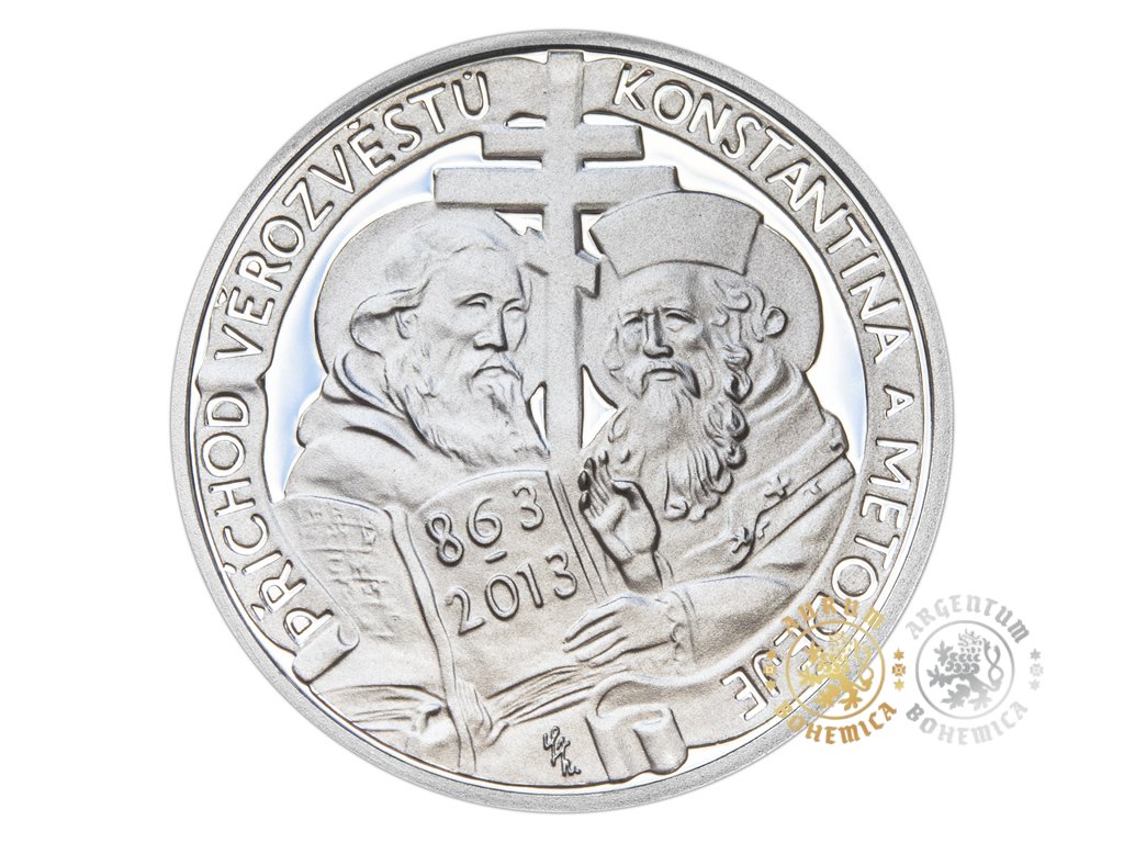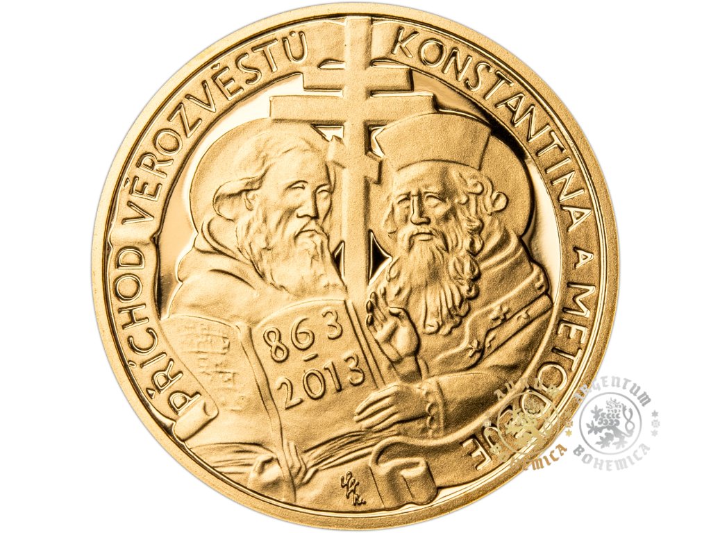 Sada zlatého dukátu a strieborného odrážku Konštantín a Metoděj 2015 - proof je reprezentatívna pamätná emisia Pražskej mincovne, ktorá vzdáva hold dvom najvýznamnejším postavám ranej slovanskej kultúry - solúnskym bratom Konštantínovi (Cyrilovi) a Metodějovi. Tí v 9. storočí priniesli na Veľkú Moravu nielen kresťanskú vieru, ale aj písmo a vzdelanosť, čím zásadne ovplyvnili kultúrny vývoj celého slovanského sveta.