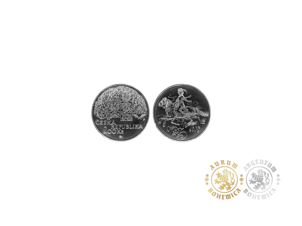 K príležitosti 150. výročia narodenia Mikoláša Alša, vydala do obehu Česká národná banka striebornú pamätnú 200 kč, a to 6. novembra, v roku 2002. Na lícnej strane mince je zobrazená kompozícia heraldických zvierat z veľkého štátneho znaku Českej republiky a pod nimi označenie mena štátu2. Na rubovej strane mince je znázornený hlavným motívom prepis Alšovej ilustrácie k básni K. V. Raise znázorňujúci inocha na koni. Vedľa motívu sa nachádzajú letopočty "1852-2002". Autorom lícnej strany tejto mince je Petr Pyciak, a tej rubovej - Luboš Charvát. Na oboch stranách sú umiestené jednotlivé iniciály autorov. Mincu razila Bižutéria Česká Mincovňa a.s. v Jablonci nad Nisou v kvalite Proof.