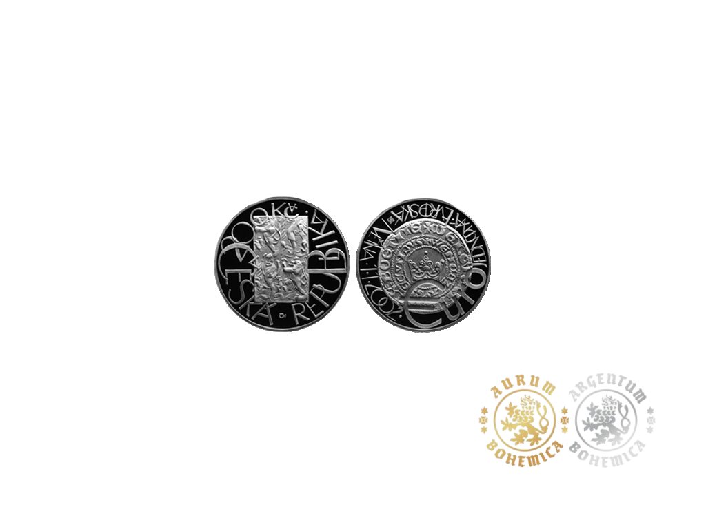 V príležitosti zavedenia jednotnej európskej meny ako obeživa, vydala Česká národná banka 5. decembra roku 2001 do obehu pamätnú striebornú mincu 200 Kč, a to 5. decembra 2001. Na lícnej strane sa nachádza kompozícia štátnych heraldických zvierat (lev, orol..) v štátnom znaku a pod . Na rubovej strane je znázornený pražský groš (predchodca euroovej meny) a na odpise pri okrajoch mince je logotyp textu "Jednotná európska mena 1.1 2002". Medzi slovami "európska" a "mena" sa nachádza plôška s iniciálami autora, Jozefa Šafaříka. Razba bola vykonaná Českou mincovňou v Jablonci nad Nisou v kvalite Proof. Jej značka je umiestnená na lícnej strane pod heraldickými zvieratami medzi slovami "Česká" a "republika".