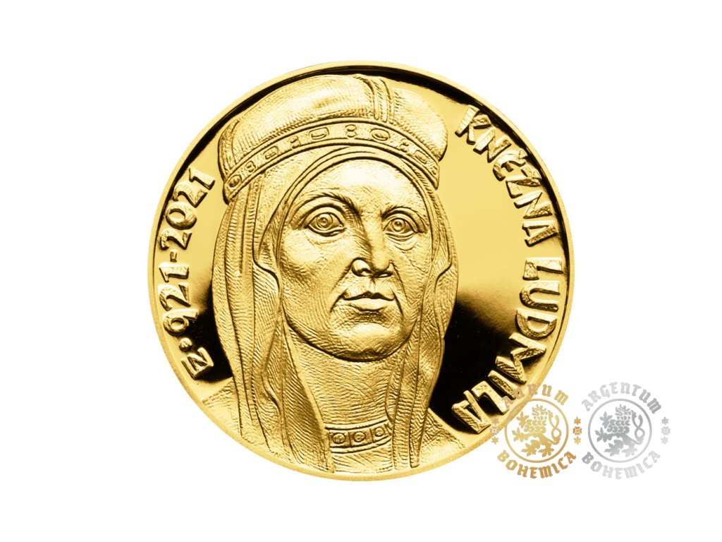 - Zlatú mincu 10 000 Kč Kněžna Ludmila 2021 Proof - pripomienku prvej českej svätice a významnej patrónky českého národa.