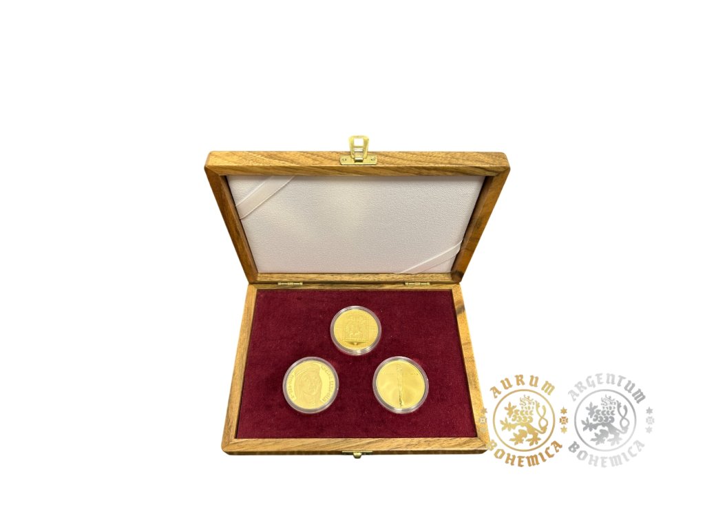 Táto mimoriadna sada troch zlatých mincí Českej národnej banky v prevedení Proof predstavuje unikátny zberateľský celok, ktorý spája tri významné historické motívy slovenských dejín. Súprava obsahuje: