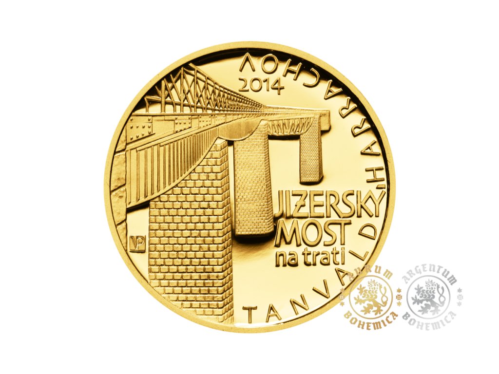 Dne 13. května 2014 vydává Česká národní banka již sedmou zlatou minci z cyklu Mosty. Jejím tématem je Jizerský most na trati Tanvald-Harrachov, který je součástí ozubnicové dráhy mezi těmito městy. Mince je ražena ze zlata o ryzosti 999.9 a vydává se ve dvojím provedení, v běžném a špičkovém (proof), které se liší povrchovou úpravou a provedením hrany. U mincí špičkové kvality je pole mince vysoce leštěné a reliéf je matován, hrana je hladká. Mince běžné kvality mají hranu vroubkovanou. Průměr mince je 28 mm, hmotnost 15,55 g a síla je 2,2 mm. Při ražbě mincí jsou povoleny odchylky v průměru 0,1 mm a v síle 0,15 mm. V hmotnosti je povolena odchylka nahoru 0,062 g a v obsahu zlata odchylka nahoru 0,01 %.