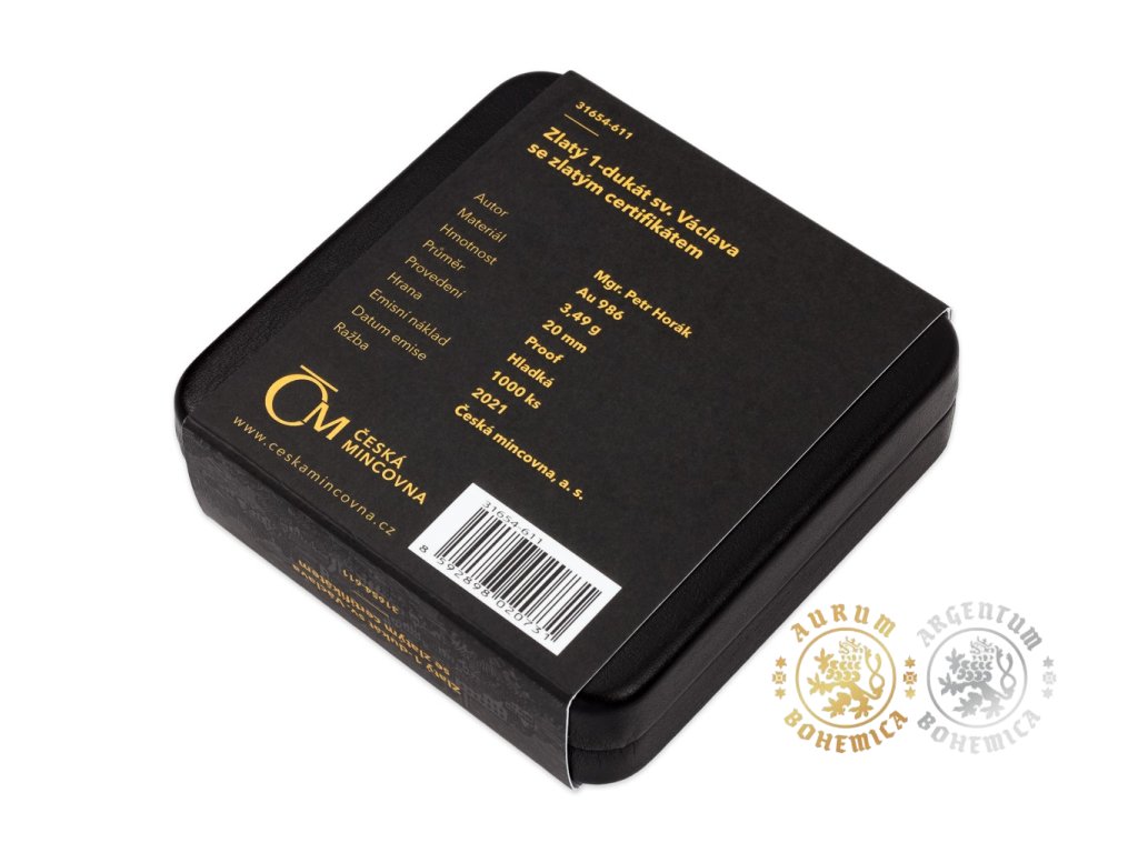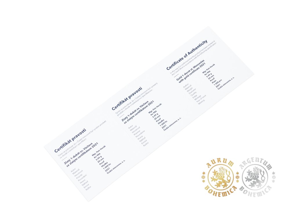 Zlatý 1 dukát sv. Václava so zlatým certifikátom 2021 Proof