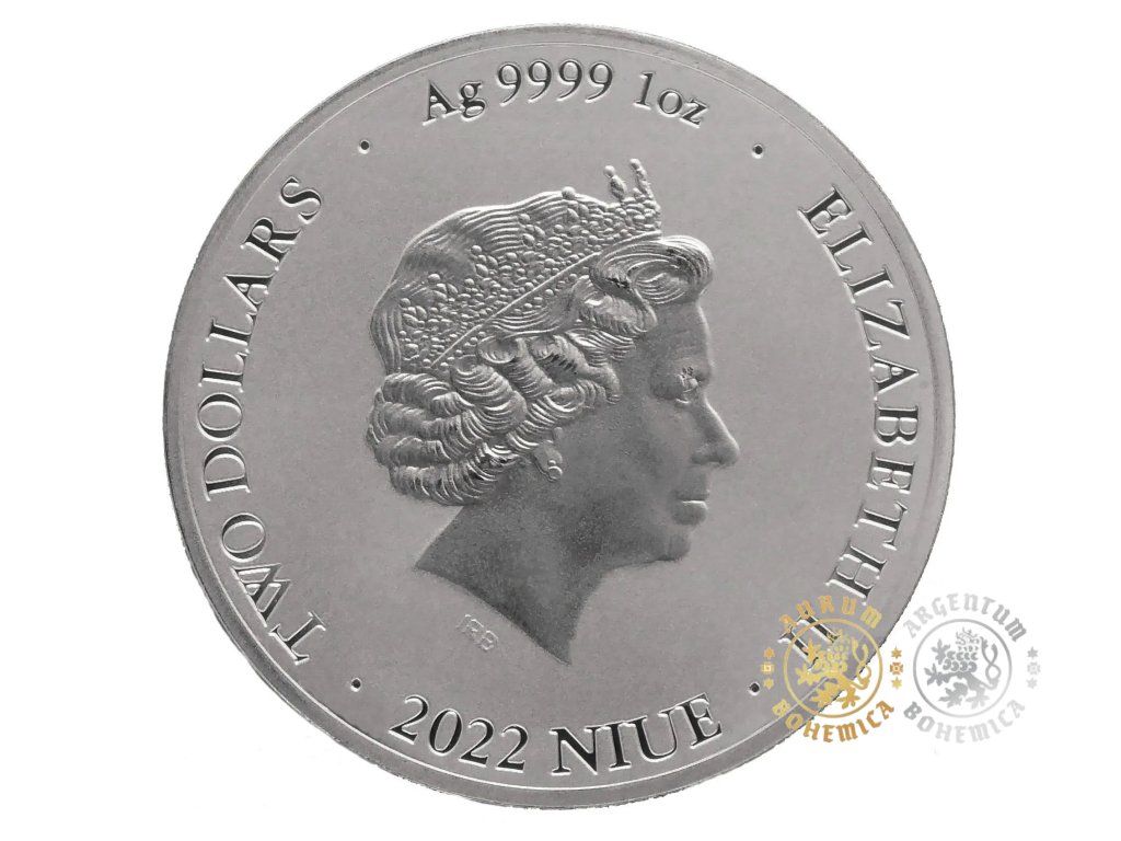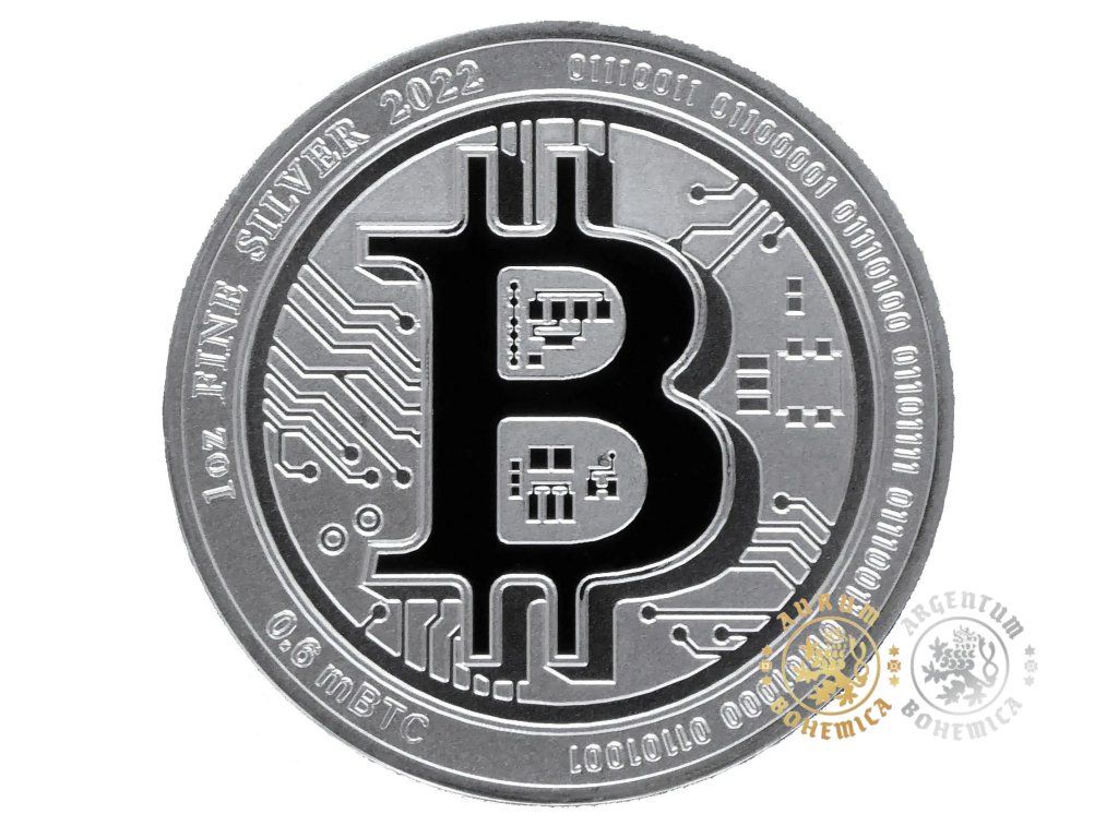 Na lícní straně mince je slavné logo a nápis 0,6 mBTC (milibitcoiny), což je kolik bitcoinů by bylo potřeba k nákupu 1 oz stříbra. (v době jeho návrhu). A nakonec nominální hodnota hmotnosti (1 oz jemné stříbro), kov (stříbro) a také rok vydání – zde 2022. Binární kód, který najdete na okraji mince, prozrazuje jméno Satoshi, který je vynálezce slavného bitcoinu.