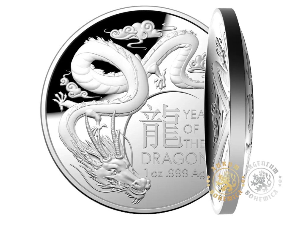 Tato jedinečná mince ve tvaru kopule je pátým vydáním nové lunární série Královské australské mincovny a byla ražena z jedné unce 99,9% stříbra. Stříbrná mince je věnována roku draka v roce 2024 a je limitována pouze 7 500 kusy po celém světě. Motivem mince je drak obklopený příznivými mraky, symbolem štěstí a štěstí. Kromě toho je na minci vyražen nápis „YEAR OF THE DRAGON“ (Rok draka), čínský znak pro „draka“ a hmotnost a ryzost. Na rubové straně je vyobrazeno lunární kalendářové kolo se všemi 12 zvířaty, portrét královny Alžběty II. od Jody Clarka doplněný daty její vlády, nominální hodnotou a rokem vydání.