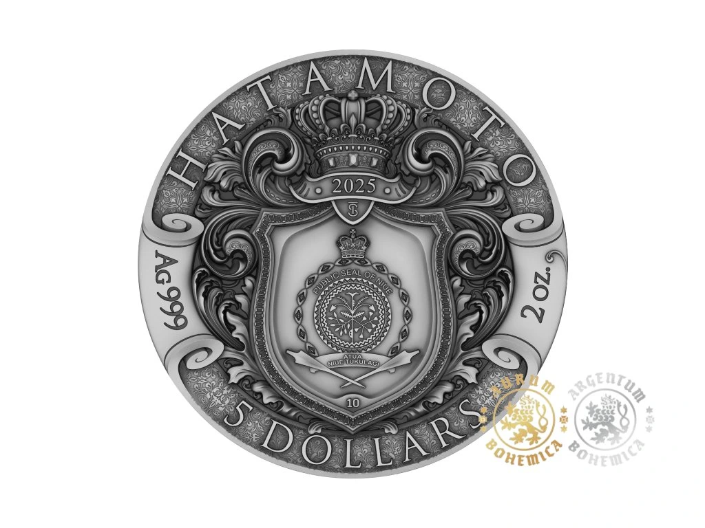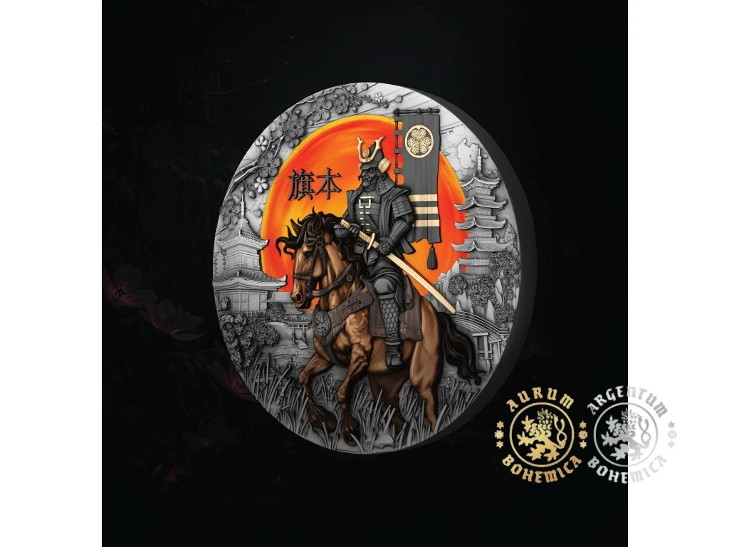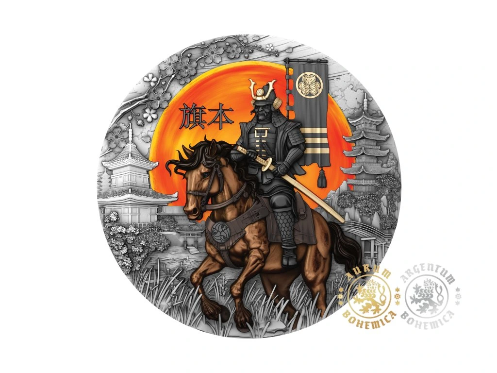 Vstupte do světa samurajů, kde byla věrnost posvátná, odvaha neochvějná a čest cennější než samotný život. V srdci tohoto království stál Hatamoto – vyvolený strážce daimjó, živoucí symbol povinnosti a oddanosti. Nyní se jeho duch znovuzrodil ve stříbře jako druhá mince ze série Cesta válečníka. Na této minci se Hatamoto jeví jako postava zrozená z legendy: sedí na hrdém koni, oděný v černé zbroji pozlacené zářivým zlatem, jeho bojová maska zakrývá smrtelné rysy a proměňuje ho ve věčného ducha boje. Za ním září velké zapadající slunce, obrovské a věčné, vrhající své ohnivé světlo na svět. Kolem této vize kvetou jemné okvětní lístky sakury – pomíjivé, křehké, ale ve vzpomínkách věčné – zatímco v dálce se tyčí tradiční chrámy, strážci kultury prodchnuté krásou a silou. Každá čára, každý symbol vyrytý do této mince odráží nadčasové ctnosti bojovníkovy cesty: věrnost neústupnou jako ocel, odvahu jasnou jako zlato a uvědomění si, že život, podobně jako květ sakury, je křehký i velkolepý. Hatamoto není jen mince – je to legenda vykovaná ze stříbra, pocta věčným strážcům, kteří jezdili v srdci historie a nesli prapory cti do války i do věčnosti. Staňte se součástí této cesty na cestě bojovníka!