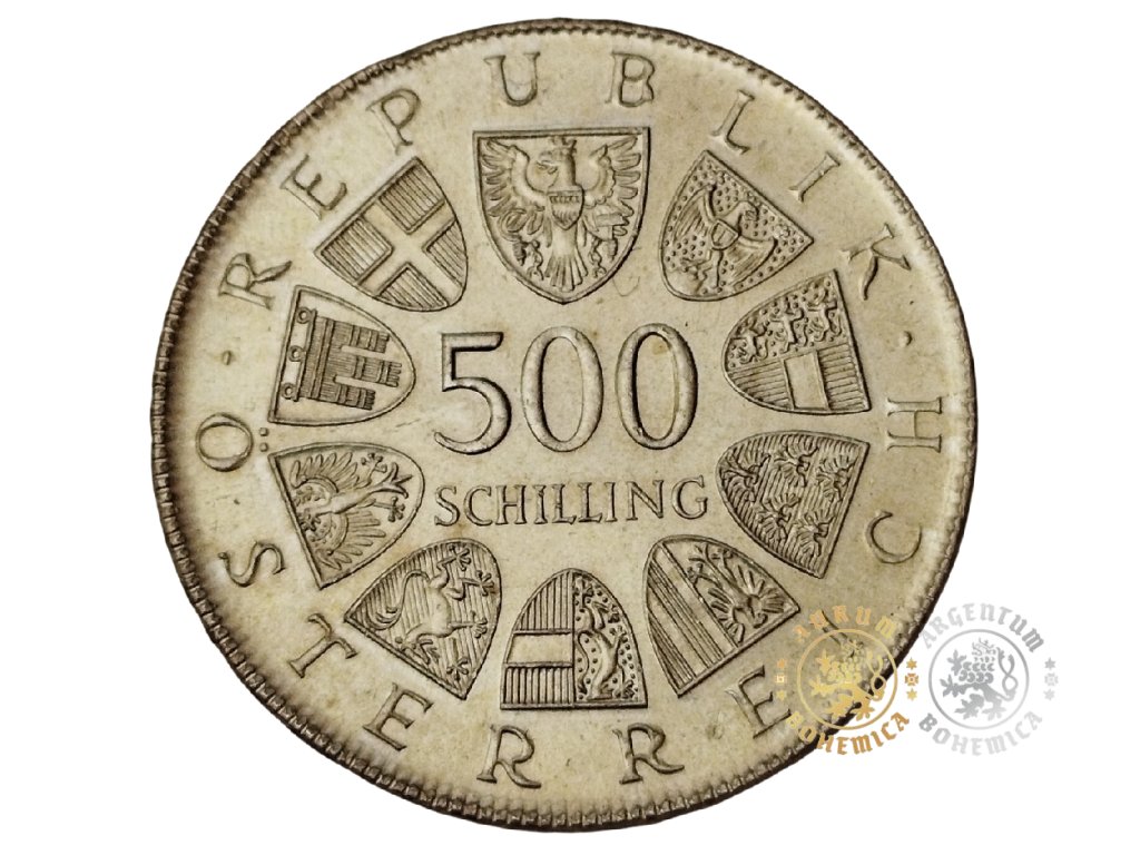 Stříbrná mince 500 Schilling 825. výročí Mariazell 1982