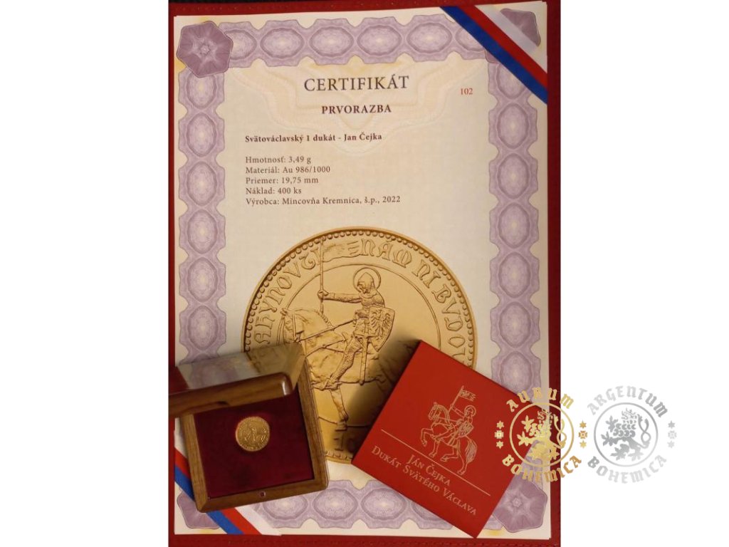 Svatováclavský 1 dukát Jana Čejky 1923/2022 Kremnica (varianta s koněm)