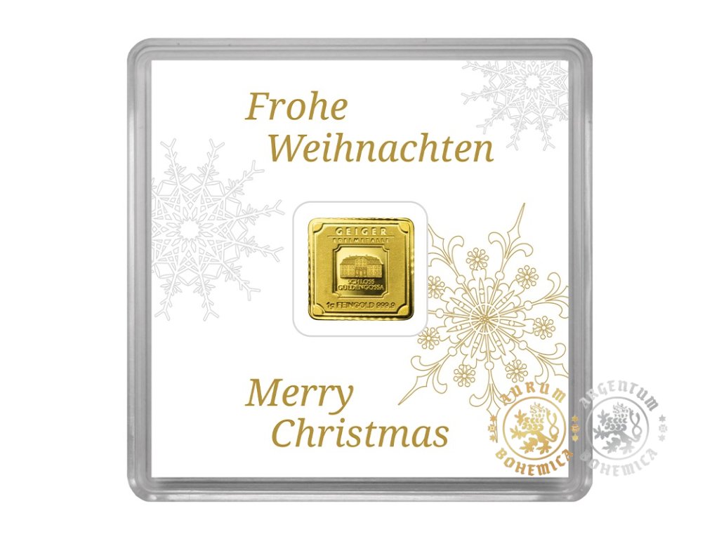 Slitek o rozměrech 10,6 x 10,6 mm je zapaspartován v plastové kapsli o rozměrech 50 x 50 mm, která mu poskytuje ochranu proti poškození. Pasparta je potištěna vánočními motivy. Kromě toho jsou uvedeny standardní údaje o slitku, jeho ryzosti a gramáži a informace o výrobci. Zadní stranu slitku pokrývají mnohočetná vyobrazení loga producenta (v kosočtverci naležato písmena LEV). Jedno větší logo reaguje na UV záření. Nechybí výrobní číslo slitku.