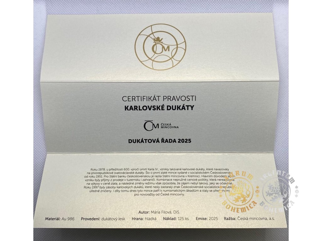 Zlatá dukátová řada ČR 2025 - Novoražby karlovských dukátů