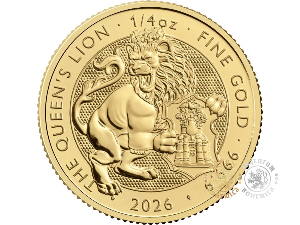 Zlatá investiční mince Tudor Beasts Queens Lion 1/4 Oz 2026
