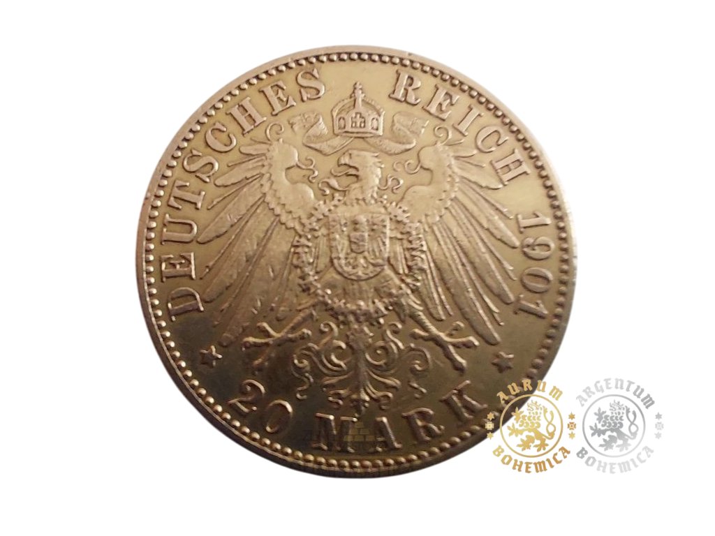 Zlatá 20 marka je celosvětově oblíbenou sběratelskou mincí. Její počátek je v roce 1888, kdy počal německé říši vládnout císař Wilhelm II.MInce se razila do konce jeho vlády v roce 1913. Líc mince nese vždy portrét panovníka a zadní strana erb Německa.