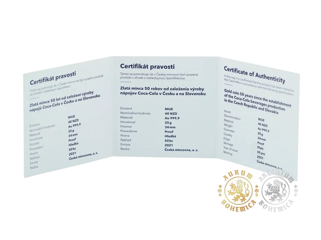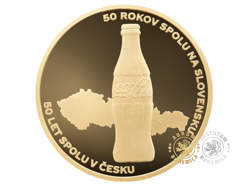 Zlatá mince 50 let od založení výroby nápoje Coca-Cola v ČR a SK 25 g 2021