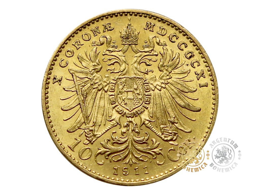Zlatá mince Desetikoruna Františka Josefa I. Rakouská ražba 1911