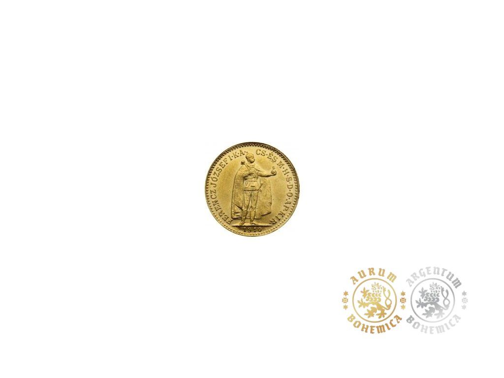 Zlatá mince Desetikoruna Františka Josefa I. Uherská ražba 1910