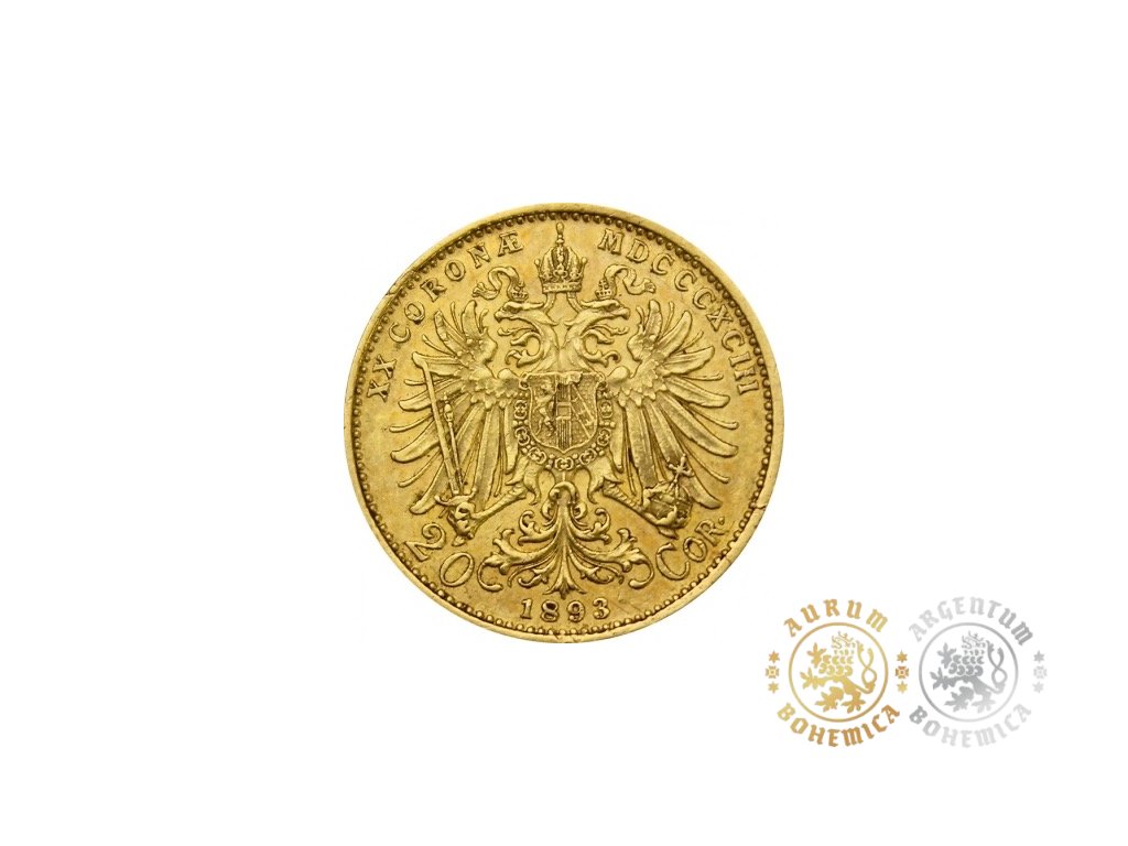 Zlatá mince Dvacetikoruna Františka Josefa I. Rakouská ražba 1893