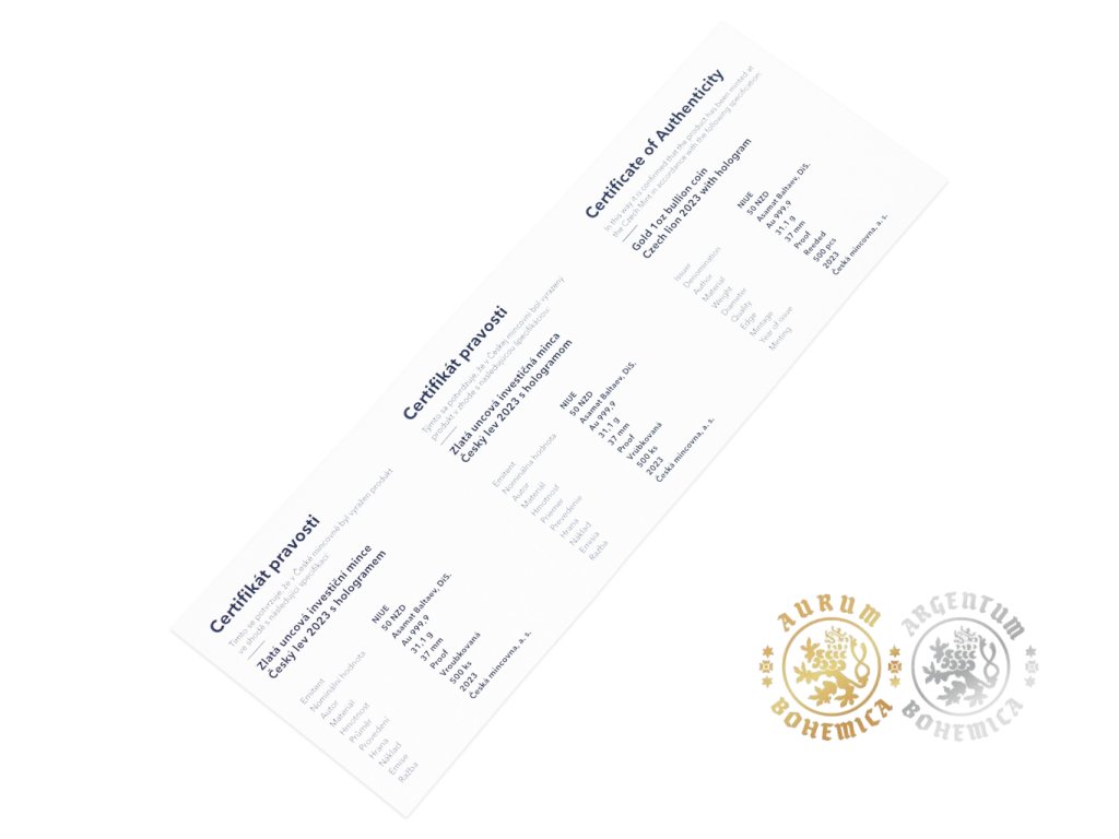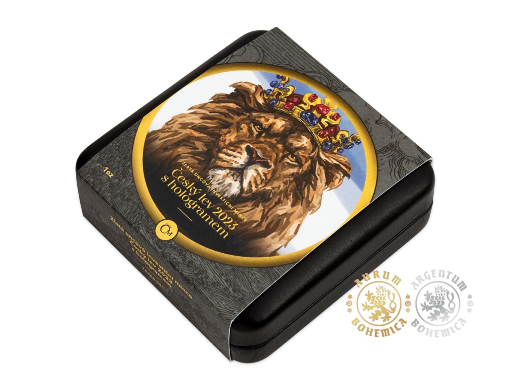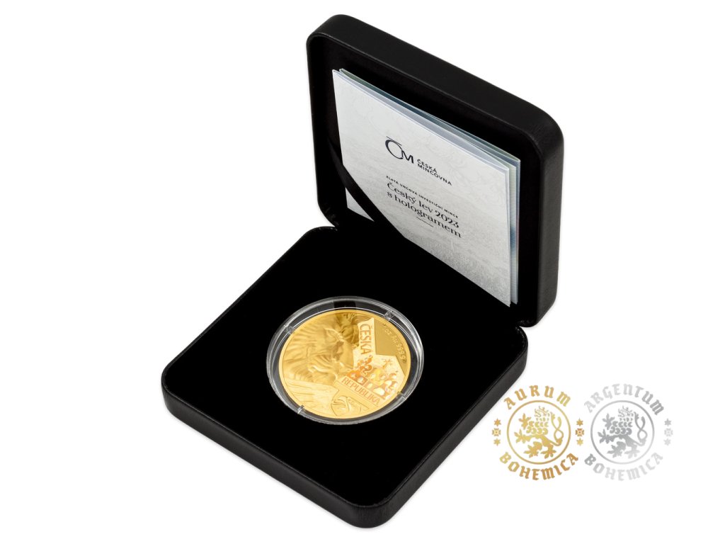 Zlatá uncová investiční mince Český lev 2023 s hologramem proof
