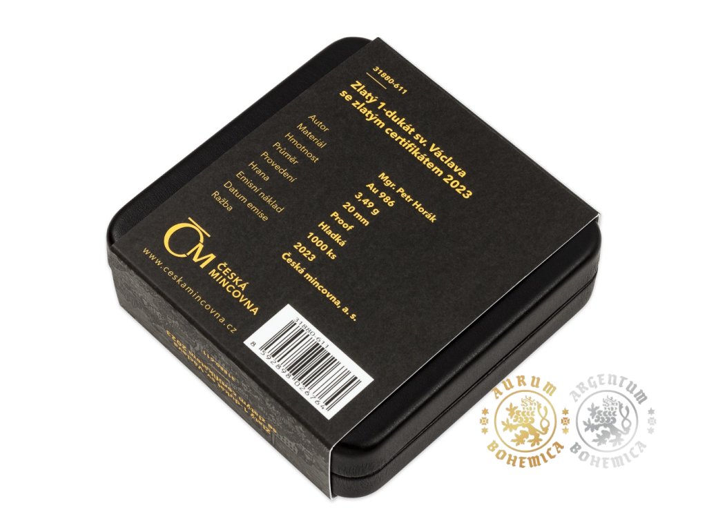 Zlatý 1-dukát sv. Václava se zlatým certifikátem 2023 Proof